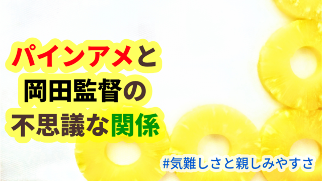 プロ野球 阪神・岡田監督とパインアメの不思議な関係 2023-08-11 けんた https://lost-gene-magazine.monosworks.com/wp-content/uploads/2023/04/lostgene_hd.png 【試験用】ロスジェネ青春マガジン