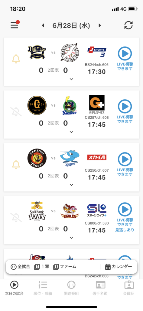 ですので、DAZN等と同様、スマホやタブレットで、場所を選ばずにプロ野球を楽しむことができるのです。