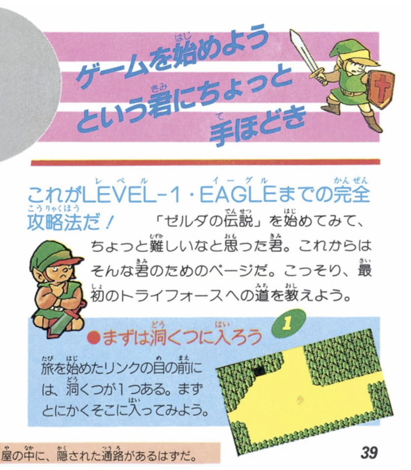 このように、すべてをネタバレすることなく、難易度を適正化して「ちょうどいいレベル」になるよう、情報を開示してくれていた、当時の攻略本のおかげで、子どもたちは、このゼルダの伝説を楽しむことができていたのです。
