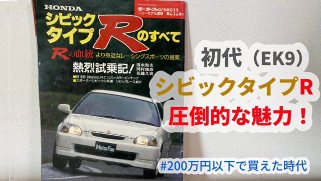 ロスジェネ世代 初代シビックタイプR(EK9)の魅力!圧倒的な高性能とお手頃価格! 2023-06-22 けんた https://lost-gene-magazine.monosworks.com/wp-content/uploads/2023/04/lostgene_hd.png 【試験用】ロスジェネ青春マガジン