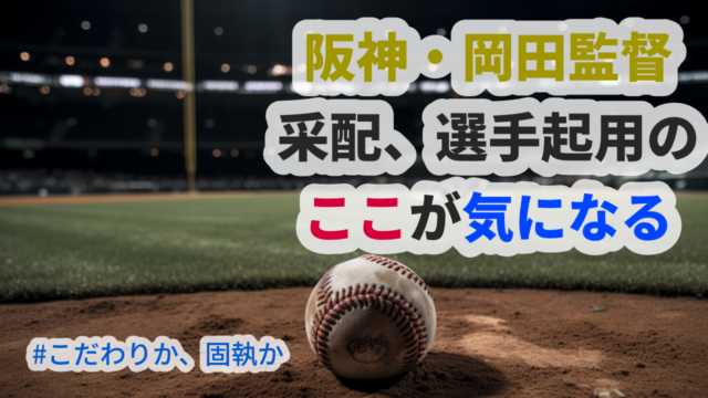 プロ野球 阪神・岡田監督、采配に4つの「問題点」!スタメン、成績、選手起用… 2023-07-04 けんた https://lost-gene-magazine.monosworks.com/wp-content/uploads/2023/04/lostgene_hd.png 【試験用】ロスジェネ青春マガジン