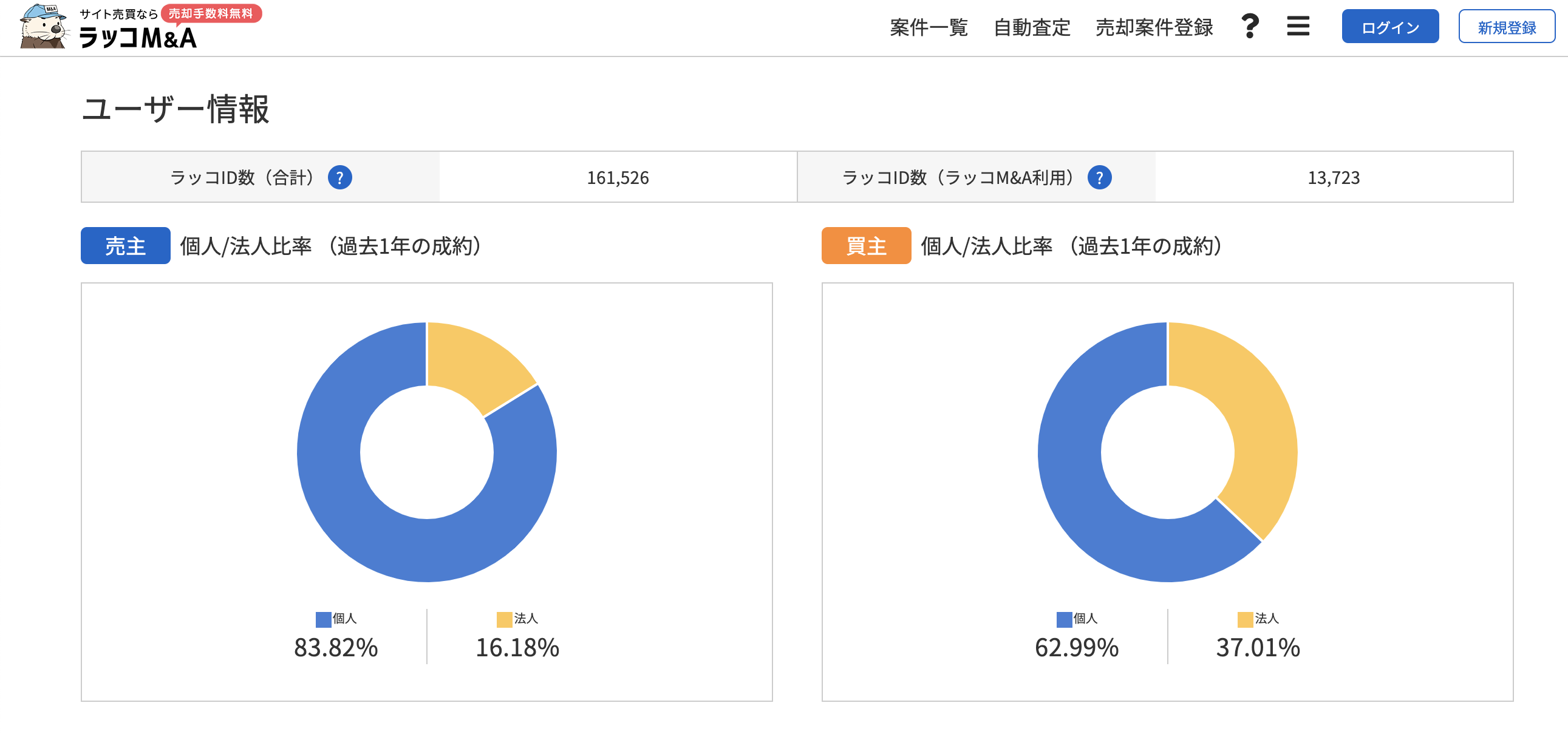 サイト売買といえば、2022年成約数No.1を誇る、ラッコM&Aが定番です。