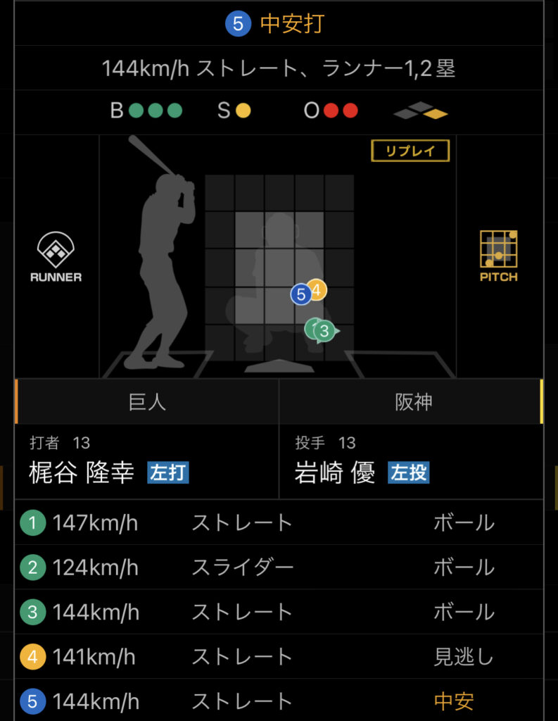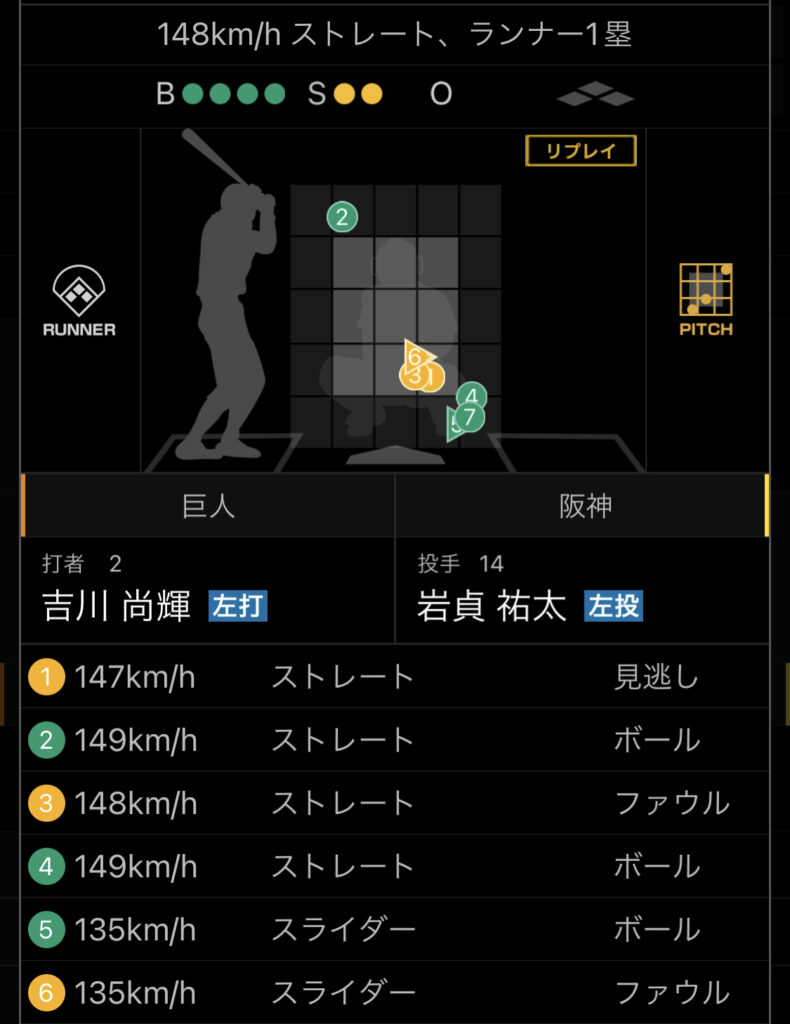 しかし、才木は、調子もあまり良くないのか、厳しいコースを攻めるリードに応えきれず、カウントを悪くしたりフォアボールを出したりと、才木らしくないピッチングが目立ちます。